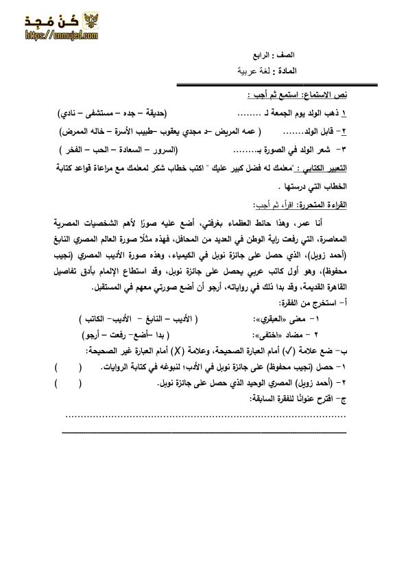 وفيما يلي مُعاينة مباشرة من نماذج امتحانات الصف الرابع الابتدائي 2022 PDF، تجدون أسفله زر تحميل الكتاب: