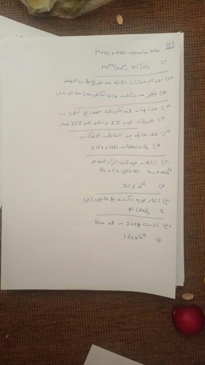 وفيما يلي نوفر لكم الإجابات النموذجية لامتحان الكيمياء للدور الثاني: