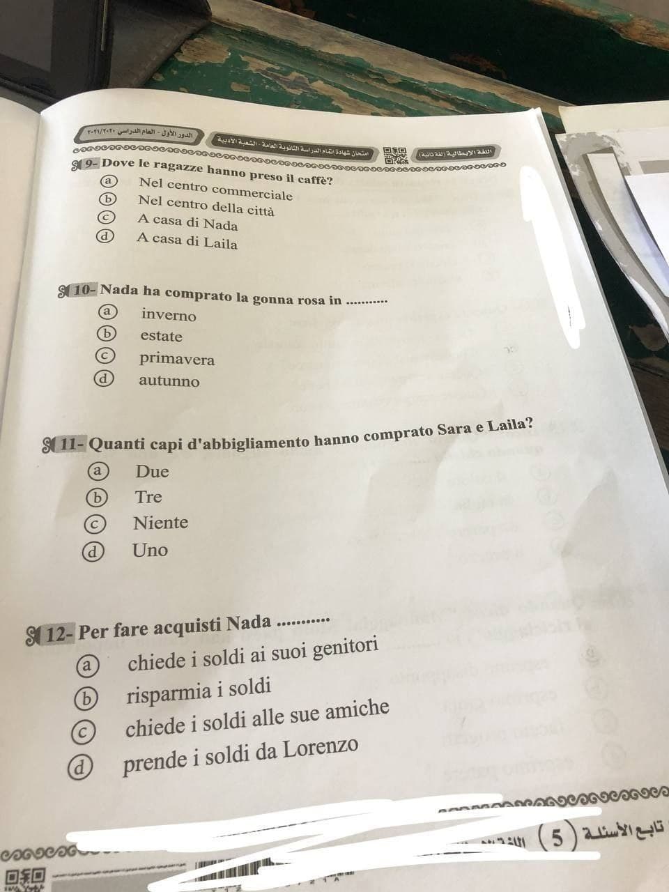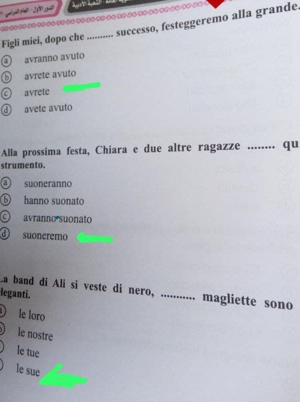 أما فيما يلي فإننا نوفر لكم حل امتحان الإيطالي للصف الثالث الثانوي 2021 طلاب شعبة أدبي، حيث يُمكنك معرفة اجابات امتحان الإيطالي للصف الثالث الثانوي 2021 الشعبة الأدبية مع القدرة علي تنزيل الملف PDF ومقارنة الإجابات للقدرة علي تقدير درجتك في هذا الامتحان: