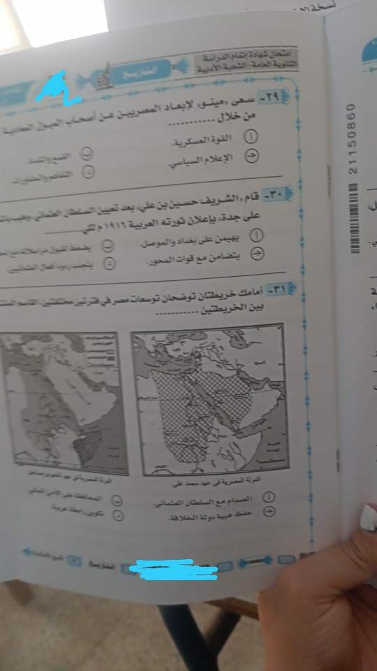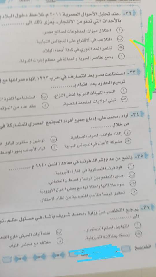 تسريب امتحان التاريخ للصف الثالث الثانوي 2021